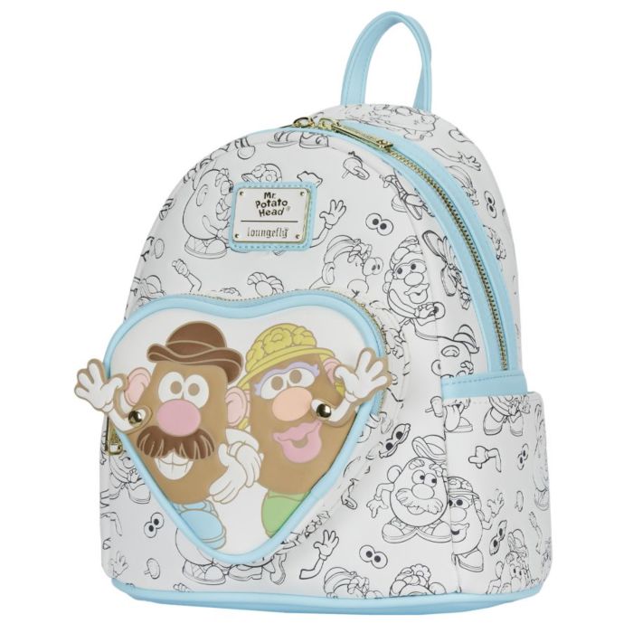 Cet adorable couple de patates vous fait signe sur la poche avant en forme de cœur de ce sac à dos - littéralement ! Leurs bras bougent en effet ! Le reste du sac à dos est orné de dessins linéaires représentant les deux amoureux en train de s'amuser ensemble et en solo. Vous verrez également leurs parties détachables, comme les yeux et les oreilles, disséminées un peu partout.