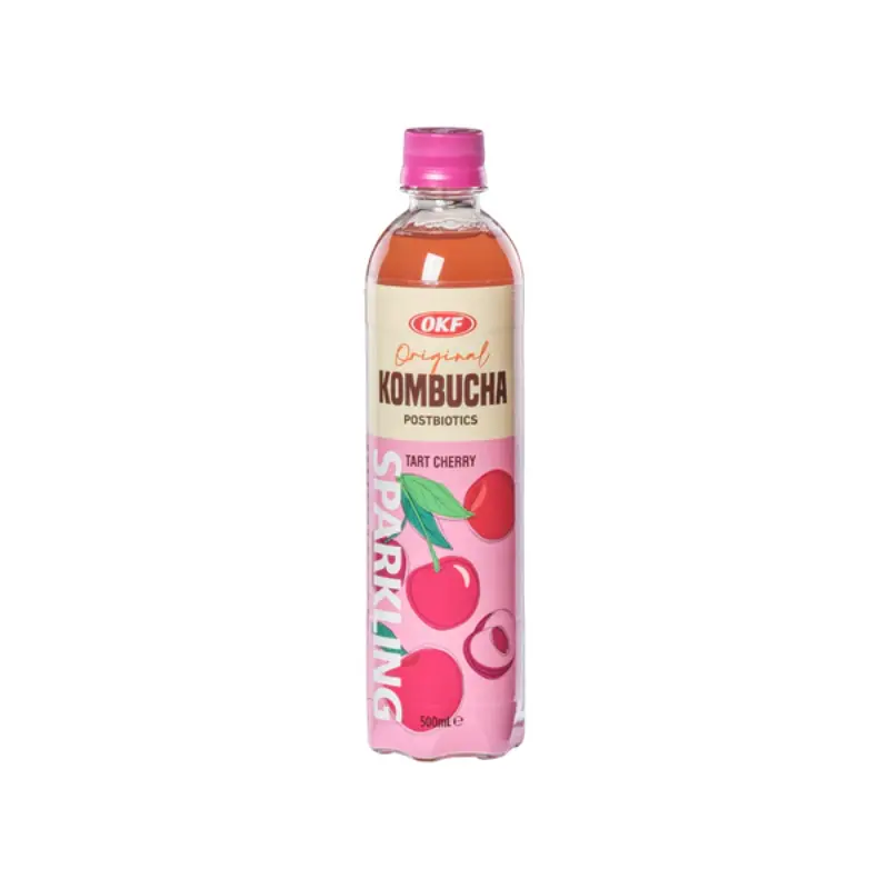 Ingrédients : Eau, kombucha, vinaigre de cidre de pomme, polydextrose, jus de cerise (1%), correcteurs d'acidité (E290, E330), arômes, extrait de thé noir, édulcorants (E950, E955), lactobacilles.