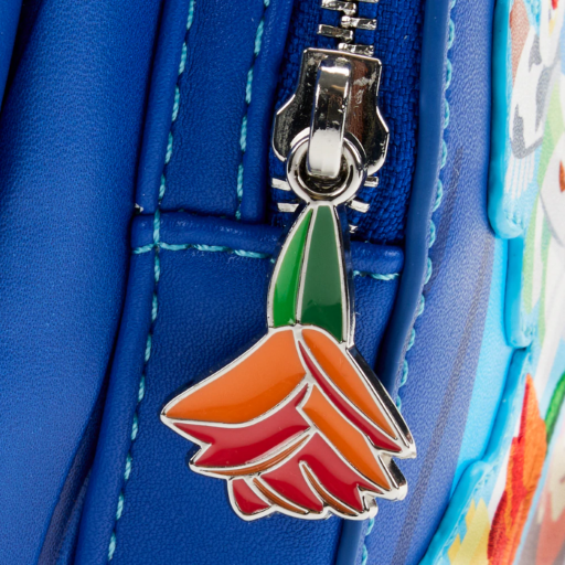 Capturez ce moment de joie et gardez-le près de vous avec ce sac à dos audacieux ! Dans le compartiment avant zippé, Buzz plonge Jessie qui lève les yeux au ciel avec un air dramatique, tenant une rose entre ses dents. Une breloque en émail représentant une rose au-dessus du compartiment zippé complète la scène. Au-dessus d’eux, deux Aliens sont perchés sur une boombox tandis que Bullseye regarde la scène d’en haut. Sur l’une des poches latérales, un détail imprimé de Woody apparaît avec une rose. Au dos, Buzz et Jessie continuent de danser au centre de la scène tandis que M. et Mme Potato Head, les Peas-in-a-Pod et Dolly forment un cercle autour d’eux.